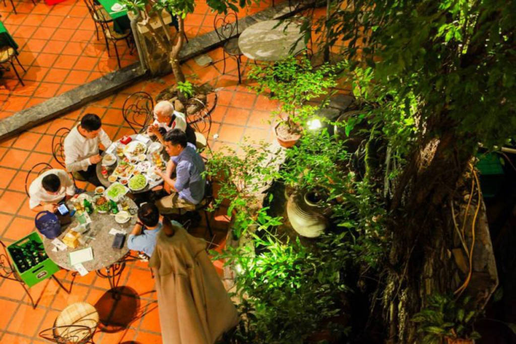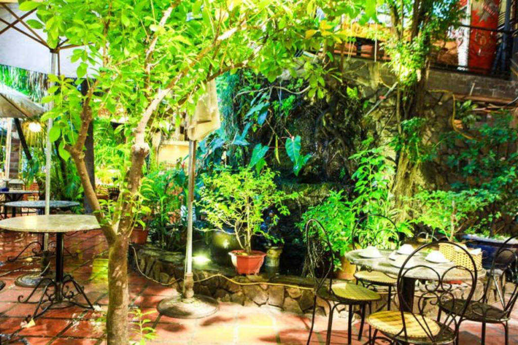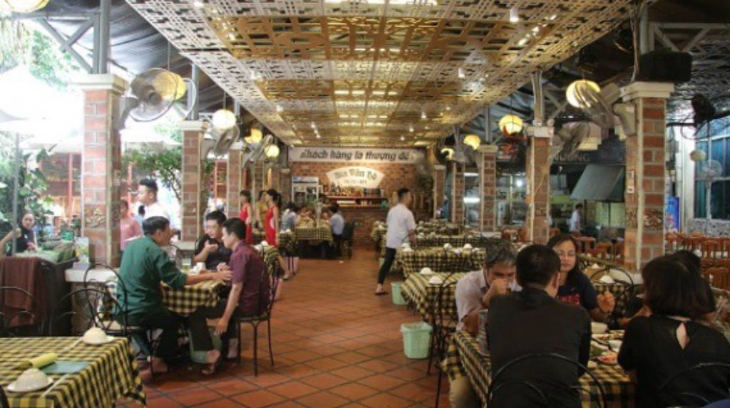 Đập vào mặt thực khách khi lần đầu tới đây đó là khuôn viên của quán, một khuôn viên hình phễu ngược. Với lối vào có phần nhỏ bé, khiêm tốn nhưng phía bên trong là một khoảng sân rất rộng, xe máy, ô tô có thể đậu thoải mái mà không hết chỗ. Khuôn viên nhà hàng thoáng mát, diện tích rộng với sân vườn, không gian xanh khiến thực khách cảm thấy cực kỳ thoải mái và không bị gò bó hay ngồi quá sát nhau không thể cựa quậy.
