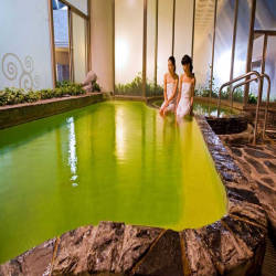 - Trẻ hóa cơ thể và tinh thần khi trải nghiệm tắm suối nước nóng và jjimjilbang (phòng xông hơi khô kiểu Hàn Quốc). Du khách có thể lựa chọn để thư giãn trong nhiều suối nước nóng mà spa cung cấp, từ bồn tắm trường sinh đến bồn tắm hang động và bồn tắm mát đến bồn tắm ngoài trời.
