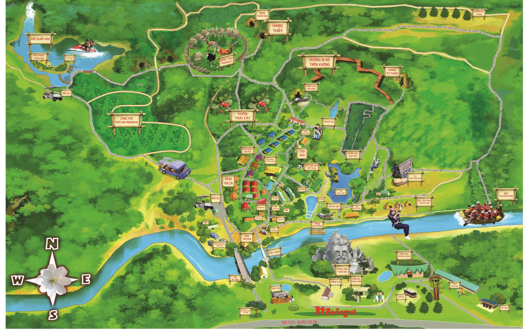 Madagui is not just a resort but a tropical forest with lush green landscapes, including over 50 types of bamboo. The air here is always cool and fresh, providing a wonderful relaxation experience for visitors. You might easily encounter deer, birds, and other wildlife in their natural habitat.