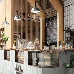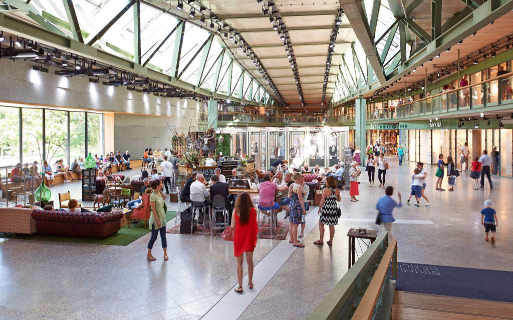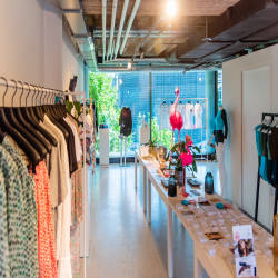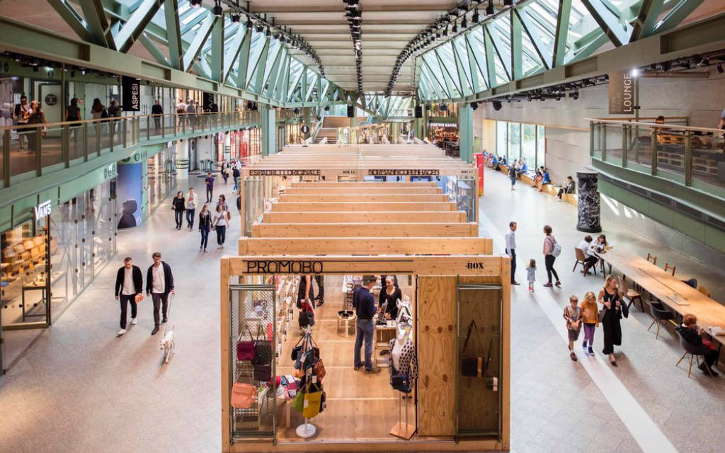 Every store is fun and unique, from Gestalten and Flagships Supermarket, to modern stores from Berlin's famous eyewear brand Mykita, Jacks Beauty and a beautiful Adidas customization studio. Food and dining is at the heart of Bikini with many restaurants and cafes at each entrance. In addition, a 3,300 square meter space located in the center of the building houses nineteen wooden designed boxes for permanent pop-up stores of emerging start-up brands.