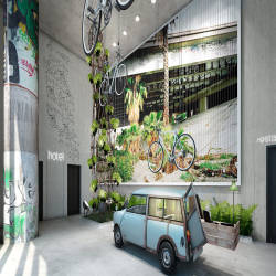 Restored between 2012 and 2013, the complex overlooks the Berlin Zoo, with stunning views of the enclosures from the rooftop terrace and panoramic windows overlooking the Bikini Pool. Bikinihaus is the main shopping center building, stretching over 7000 square meters with 3 floors, including a terrace. The space contains a mix of well-known brand stores and concept stores, with a focus on local brands and designers.