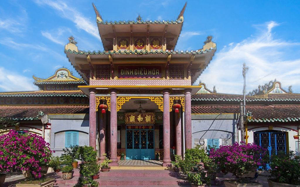 Founded during the Nguyen Dynasty, originally named Giang Tram Dieu Hoa Thon, Dieu Hoa Temple was initially built as a resting place for the local officials who were working in the area. Additionally, it was a place for worshiping the Thanh Hoang deity (The City God), the guardian spirit of the village, as well as ancestors who had contributed to clearing land and establishing the Hoa My, Hoa Hao, and Hoa Thoi settlements. In 1904, the Temple was seriously damaged by the Year of the Metal Dragon storm and had to be relocated. In 1913, the Temple was rebuilt at its current location on Trinh Hoai Duc street and has remained intact ever since, becoming a cultural symbol of My Tho.