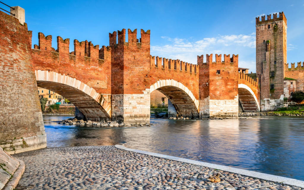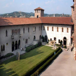 Được xây dựng vào giữa thế kỷ 14 bởi Hoàng tử Cangrande II della Scala, sau Nhà hát vòng tròn Arena, đây là tượng đài hùng vĩ nhất trong thành phố. Ban đầu được gọi là Castell di San Martino ở Aquaro, nó được biết đến với tên là Castell Vecchio khi một lâu đài mới, thậm chí còn rộng lớn và hùng vĩ hơn, được xây dựng bởi gia đình Visconti trên đỉnh đồi San Pietro.