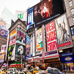 Đi xem kịch tại Broadway là một trong những trải nghiệm hàng đầu khi tới New York. Broadway và Theatre District bao gồm 41 sân khấu kịch, mỗi nơi có sức chứa 500 hoặc hơn. Được coi là đỉnh cao của nhà hát Mỹ, đây là nơi để xem các vở mới nhất và cả những vở kinh điển.