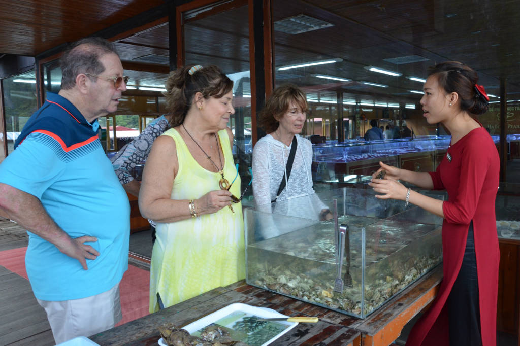 Vinh Ha Long is not only an attractive destination with many beautiful scenes, it is also an attractive destination for tourists when they can explore and learn about pearl farming on the bay. Pearl culture in Quang Ninh was formed 40 years ago, when the Japanese brought pearl culture technology widely popular around the world, including Quang Ninh. At the beginning, when raising pearls, the owners still faced many difficulties when cultivating and transplanting pearls. The pearls when harvested in the early stages produce very few seeds, but in return, the pearls raised here meet the strict standards of the Japanese, this is a great start for farming. later transplant. Currently, after a period of studying and applying proficient technology, jewelry products made from pearls in Ha Long are very popular with tourists, the products are not only guaranteed in quality but also in quality. very diverse in color.