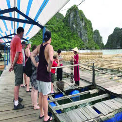 The mussel culture area is concentrated mainly in Tung Sau area, about 16km from the shore, visitors here can visit the model of mussel farming combined with tourism of Ha Long Pearl Joint Stock Company. Here, visitors can witness first-hand how the craftsmen carry out the processes starting from culturing to harvesting and manufacturing. Normally, to harvest pearls, it takes a long time, on average, from 2 years or more from the time the mussels have pearls inside. The area of Ha Long Trai Joint Stock Company also has a display area for products to make it easy for customers to buy souvenirs for their loved ones after the trip.