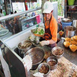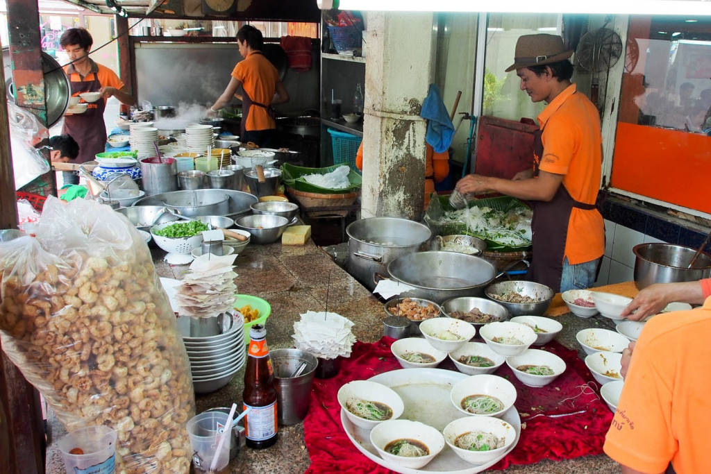Hầu hết các nhà hàng cung cấp món mì ở Bangkok đều phục vụ những phần đủ cho một bữa ăn, nhưng tại Hẻm Mì Thuyền vẫn mang truyền thống lâu đời là cung cấp những tô nhỏ - cách làm này giúp hạn chế mì rơi vãi khi ăn trên thuyền.