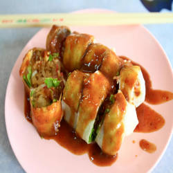 Por pia gần giống với chả giò ở Việt Nam, chỉ khác là nó không được chiên giòn. Món ăn đường phố này chứa các nguyên liệu tươi sống bọc trong một lớp bánh bột gạo mỏng. Nó thường là món chay, có cà rốt, dưa chuột, hạt đậu rang, rau diếp và rau thơm, nhưng có những người bán hàng rong ở Phuket chế biến món này với gà nướng. Por pia thường chấm với tương ớt hoặc tương đậu phộng.