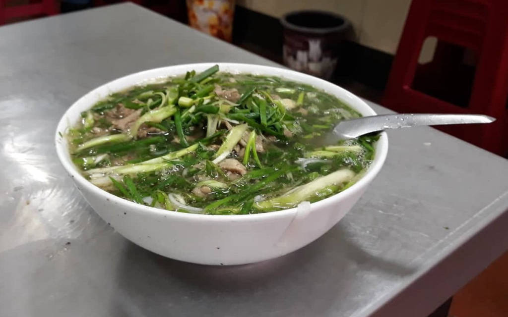 The beef of pho here is not dipped, but quickly stir-fried in a large pan with enough spices, fresh onions, garlic, and ginger and then put in a bowl. Therefore, not only is the meat fragrant and rich, the broth is also quite greasy with the old hot fat layer on top. There is no indulgence here, the restaurant only serves one dish for those who really want to enjoy it. Green onions are cut into long stalks, covered with green covering the whole bowl of pho, but when you mix it up, you can see that the beef is quite a lot below. This ingredient is very good for health, and is an important ingredient in creating the full flavor of the dish.