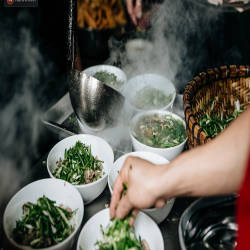 On summer days, everyone was drenched in sweat but still slurping a delicious bowl of pho. The space is narrow, the people are crowded, the fan is not cool enough, the kitchen is right near the seats. After eating, they leave the restaurant right away, instead of sitting down to talk and rest like in many other spaces. Asking a regular customer who lives a few streets away, he said he found the old taste here, and "the miserable Hanoi-style eating culture that many people don't like, but I feel close".