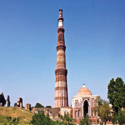 Qutub Minar là tháp được xây bằng gạch cao nhất thế giới, với chiều cao 73 m, tòa tháp có 5 tầng, được UNESCO công nhận là Di sản Thế giới, vẫn là một trong những tòa nhà tráng lệ nhất của Ấn Độ từ thời trung cổ. Ba tầng đầu tiên của tháp được xây bằng đá sa thạch đỏ trong khi tầng thứ tư và thứ năm được làm bằng đá cẩm thạch và sa thạch.