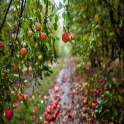 Các nhà khoa học tin rằng hạt giống của táo Tian Shan lần đầu tiên được chim và gấu vận chuyển ra khỏi Kazakhstan từ rất lâu đến nhiều lãnh thổ trên thế giới và con người bắt đầu tiến hành trồng loại trái cây bổ dưỡng này. Vào thời điểm con người bắt đầu trồng và buôn bán táo, giống táo Malus sieversii đã hình thành và bén rễ ở Syria. Người La Mã đã phát hiện ra giống táo này ở đó và đã bắt đầu phân tán loại quả này đi khắp thế giới. Khi các dự án giải trình tự bộ gen của các loài táo trên thế giới thì Almaty và các vùng đất lân cận đã chính thức được công nhận là nguồn gốc của tất cả các loại táo.