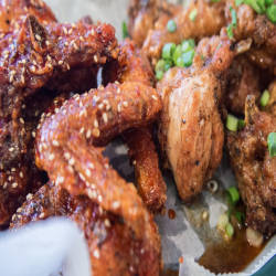Không giống như gà rán Mỹ, người Hàn Quốc chiên gà hai lần. Họ tẩm nó trong bột mì và tinh bột khoai tây để chiên lần đầu trong dầu thực vật nóng, sau đó lấy gà ra trước khi nó chín hoàn toàn, và để cho nguội nhanh. Vài phút sau, thịt quay trở lại để nhúng lần thứ hai trong dầu nóng, giúp loại bỏ độ ẩm dư thừa và tạo ra chất béo trên da. Cách chiên kép này tạo ra một lớp phủ mỏng nhẹ tuyệt vời có thể chịu được nhiều loại nước sốt phổ biến - từ hỗn hợp tỏi - đậu nành ngọt đến hỗn hợp dựa trên ớt lên men gochujang cay đậm đà - trong khi vẫn giòn.
