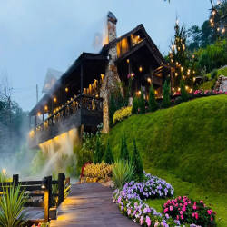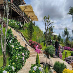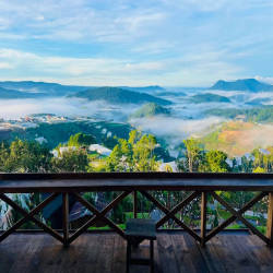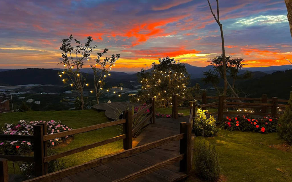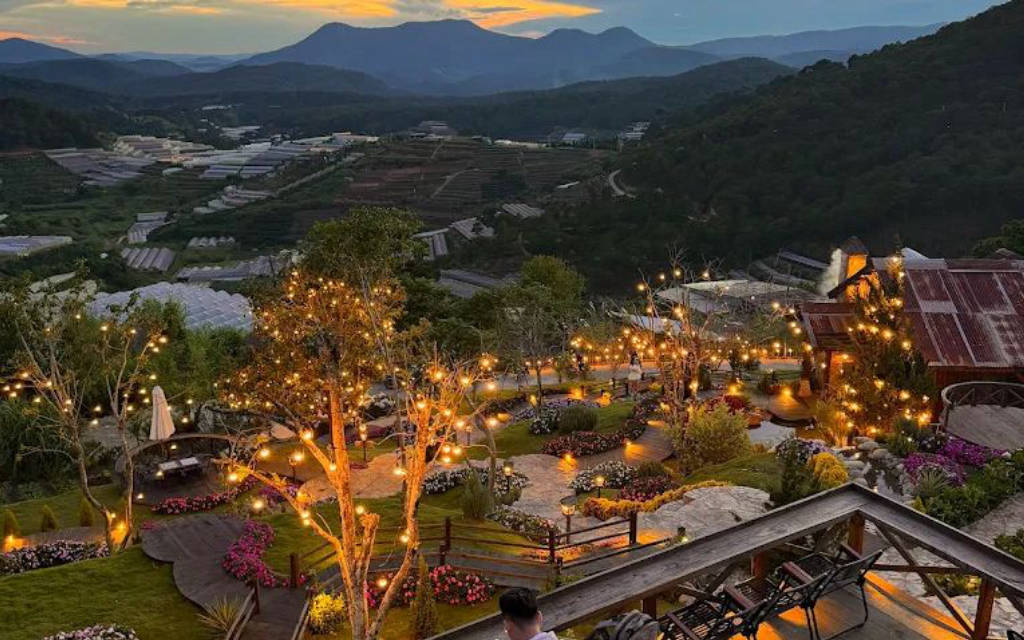 Nằm tại khu vực Trại Mát - nơi cao hơn mặt nước biển đáng kể so với trung tâm, Thác Mây & Chill sở hữu tầm nhìn vô cực hướng thẳng ra thung lũng nhà lồng. Đây là điểm đến lý tưởng để bạn chiêm ngưỡng biển mây bồng bềnh vào sáng sớm hoặc ngắm nhìn ánh đèn lung linh từ những dãy nhà kính trồng hoa khi đêm về.