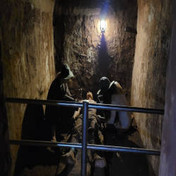Lòng địa đạo có không gian khá kín và hẹp. Những du khách có tiền sử bệnh tim mạch, huyết áp cao hoặc mắc hội chứng sợ không gian hẹp (Claustrophobia) nên cân nhắc kỹ. Bạn hoàn toàn có thể chọn tham quan khu vực đền thờ và nhà trưng bày phía trên thay vì đi sâu xuống hầm.