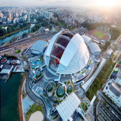 Một trong những đặc điểm nổi bật nhất của sân vận động là kiến trúc ấn tượng. Cấu trúc giống như mái vòm tuyệt đẹp được chiếu sáng vào ban đêm đã trở thành biểu tượng mang tính biểu tượng của Singapore hiện đại. Vị trí trung tâm của sân vận động trong thành phố làm tăng thêm khả năng tiếp cận và sự hấp dẫn của nó, cho phép cả người dân địa phương và khách du lịch dễ dàng tiếp cận.
