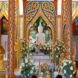 "Wat Chalong là một ngôi chùa Phật giáo và cũng là một địa danh lịch sử ở Vịnh Chalong của Phuket. Trong nhiều thế kỷ qua, người dân địa phương thường đến chùa để cầu nguyện trong khi khách du lịch đến để tìm hiểu về Phật giáo. Tên chính thức của ngôi chùa là Wat Chaitararam, nhưng hầu hết mọi người dân đều gọi nó là Wat Chalong."