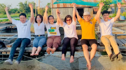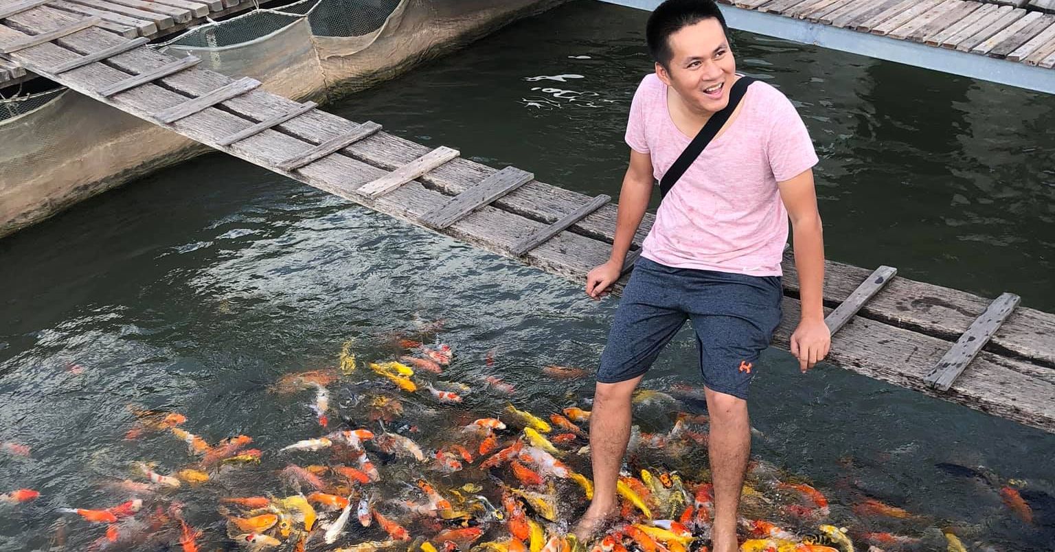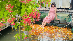 Làng cá bè Cồn Sơn: trải nghiệm massage cá Koi, thưởng thức chả cá thác lác nhà làm trên bè.