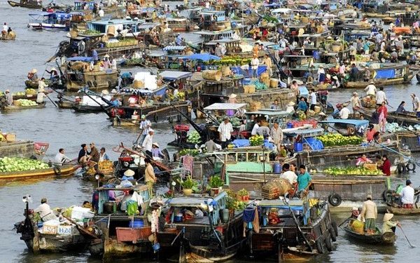 • Ghé thăm chợ nổi nhộn nhịp vào buổi sáng, lênh đênh trên thuyền giữa sông.