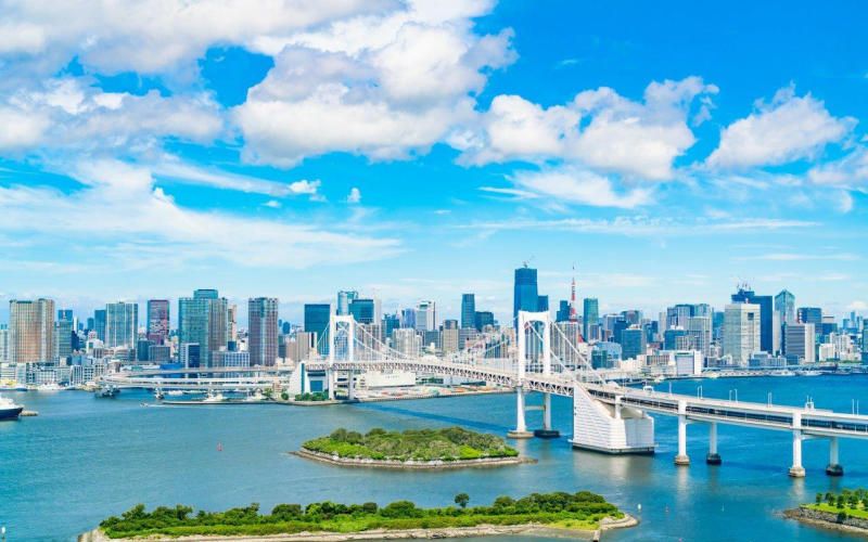 • Vịnh Odaiba: nằm trên một hòn đảo nhân tạo lớn thuộc Vịnh Tokyo, trước đây được xây dựng để bảo vệ Tokyo khỏi những cuộc tấn công của thủy quân thời Edo vào thế kỉ 17-19, giờ đây là khu vực sầm uất, thu hút hàng triệu du khách mỗi năm. Ngoài ra, vịnh còn có tượng Nữ thần Tự do Odaiba nằm ở ngay phía trước Cầu Cầu Vồng, khiến nó trông như có kích thước tương đương với bản gốc Tượng Nữ thần Tự do nổi tiếng ở New York, nhưng trên thực tế nhỏ hơn bảy lần.