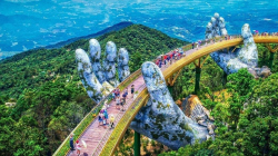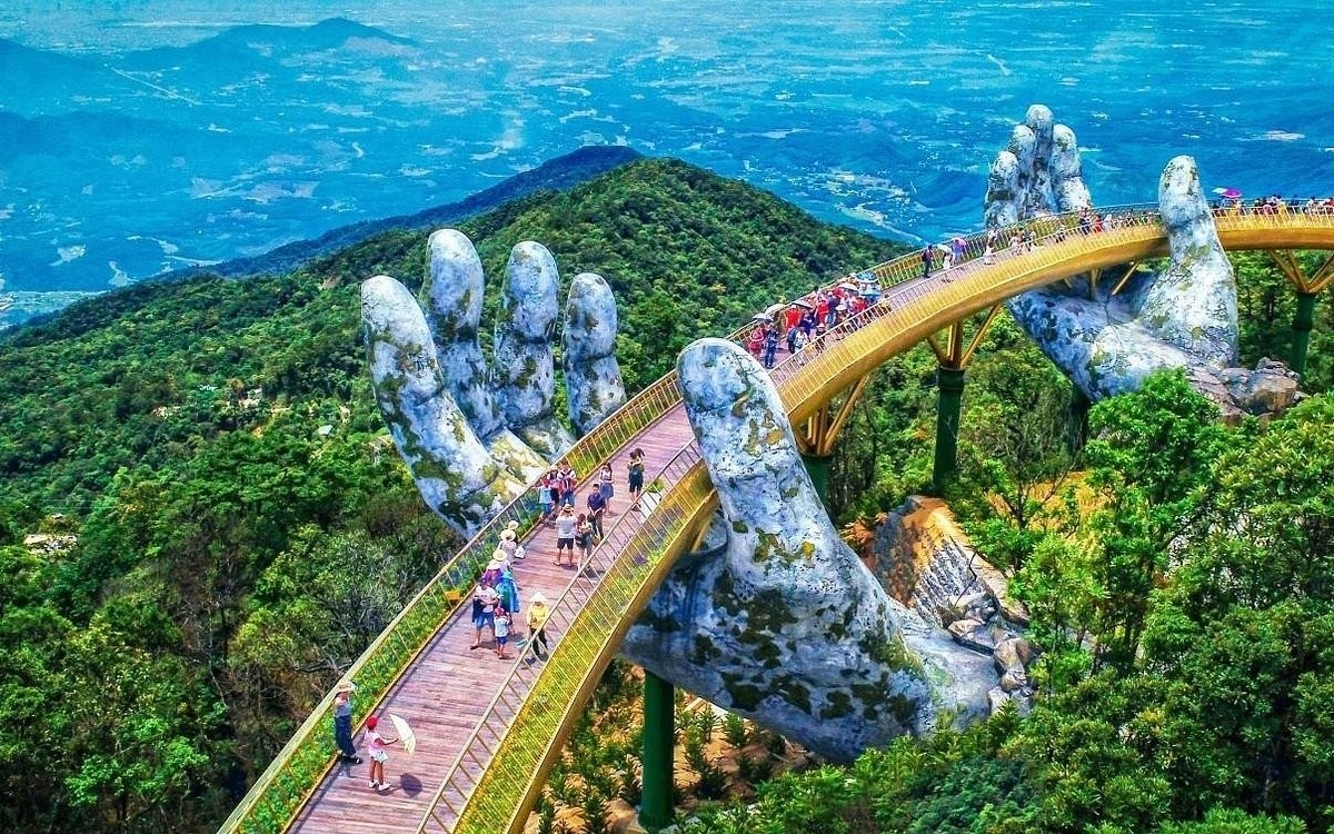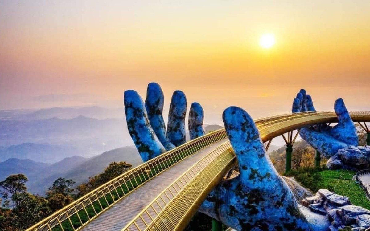Sau khi hoàn thành chặng cáp treo đầu tiên, bạn sẽ tham quan Cầu Vàng – nổi bật với hình ảnh hai bàn tay khổng lồ nâng đỡ cây cầu như dải lụa vắt ngang núi. Từ đây, bạn có thể ngắm nhìn toàn cảnh thành phố Đà Nẵng hoặc tận hưởng không gian giữa mây trời và rừng xanh.