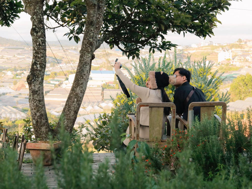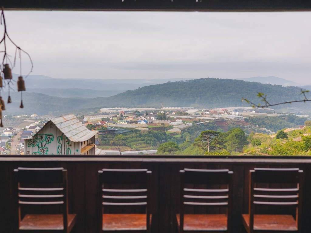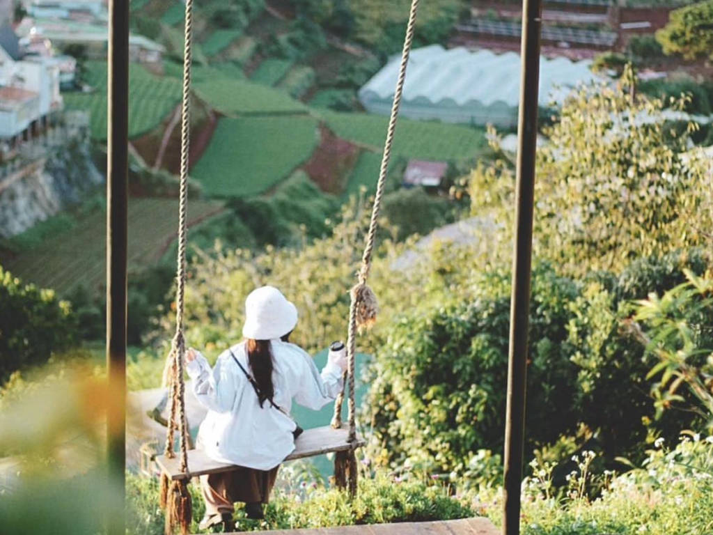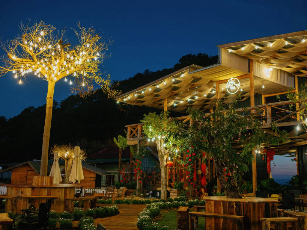 Nestled on a high hill in the suburbs of Da Lat, Tren Doi Co May is not just a coffee shop – it is an experience that touches the pristine and peaceful beauty of the mountain town. Many famous Instagram angles such as: swings in the clouds, wooden balconies facing the mountains, single chairs on the hillside or windows opening to endless nature. In the morning, sunlight filters through the mist to create a magical scene – perfect for gentle, dreamy photos.