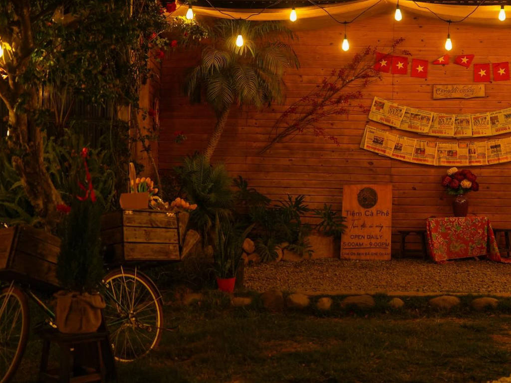 Hidden in a small alley on the hillside in the suburbs of Da Lat. The shop is a place that brings a peaceful, slow and romantic feeling like an old song. This is not just a coffee shop, but an art space dedicated to souls who love beauty and sophistication. The space of the shop is surrounded by a daisy garden, green grass, vines and pine trees, creating the feeling of entering a nostalgic garden.