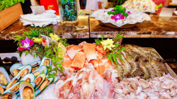 Trên tàu: Bữa trưa và bữa tối với hải sản (có phục vụ nếu khách có nhu cầu ăn chay)