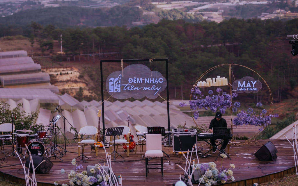 When the chill melodies begin to play, blending with the cool Da Lat air, all your senses are awakened. At night, the lights from surrounding greenhouses sparkle in the valley, making the atmosphere feel like you're sitting under a giant box of stars.