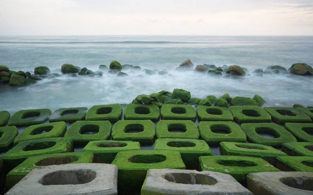 Bờ kè Xóm Rớ thuộc địa phận Đông Tác, Phường Phú Đông, Thành phố Tuy Hòa, Tỉnh Phú Yên. Người dân địa phương cho biết: “Nơi này chịu nhiều ảnh hưởng của thiên nhiên nên thường xuyên bị ngập lún, xói mòn và sạt lở. Vì vậy, chính quyền địa phương quyết định xây dựng bờ kè để chống xói mòn và sạt lở”. Nhưng điều mà ai cũng không ngờ rằng kể từ khi thi công đến nay, những tảng bê tông rỗng vuông vức được thả xuống biển cùng với đá tảng, sau một thời gian đã sinh ra rêu xanh và chúng cứ lớn dần lên đã tạo điểm nhấn bởi vẻ đẹp lạ lẫm, ghi điểm với mỗi du khách đến đây. Màu rêu xanh ngắt bám chặt vào đá và càng đẹp hơn khi từng con sóng vỗ vào bờ hoà quyện thêm màu ánh bạc của nước biển. Tùy vào ánh nắng mặt trời và thời gian các loại rêu ở đây có màu sắc biến đổi khi xanh non, khi trắng bạc khi thì xanh đậm đúng chất rêu.