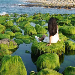 – Khi hoàng hôn xuống với ánh nắng đỏ ửng xuyên qua những khe đá, bãi rêu có màu xanh đậm tạo nên vẻ đẹp mê hồn cho những ai thích ngắm hoàng hôn.