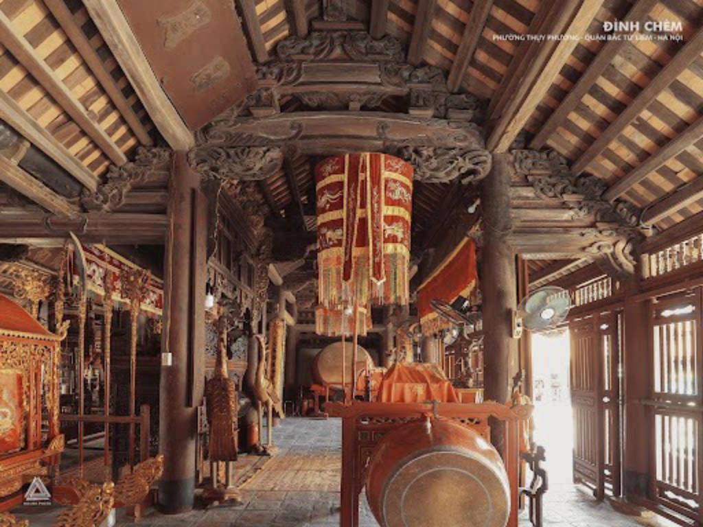Đặc biệt, đình Chèm hiện còn lưu giữ được chiếc lư hương nghìn năm tuổi và cây thiên tuế quý hiếm hay hệ thống máng nước mưa được đúc bằng đồng vào các năm 1748 và 1756 dưới thời vua Lê Hiển Tông và năm 1824 dưới triều vua Minh Mạng nhà Nguyễn. Toàn bộ di tích trong đền được bố trí theo trục hoàng đạo: Đông Bắc Tây Nam.
