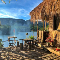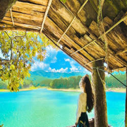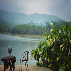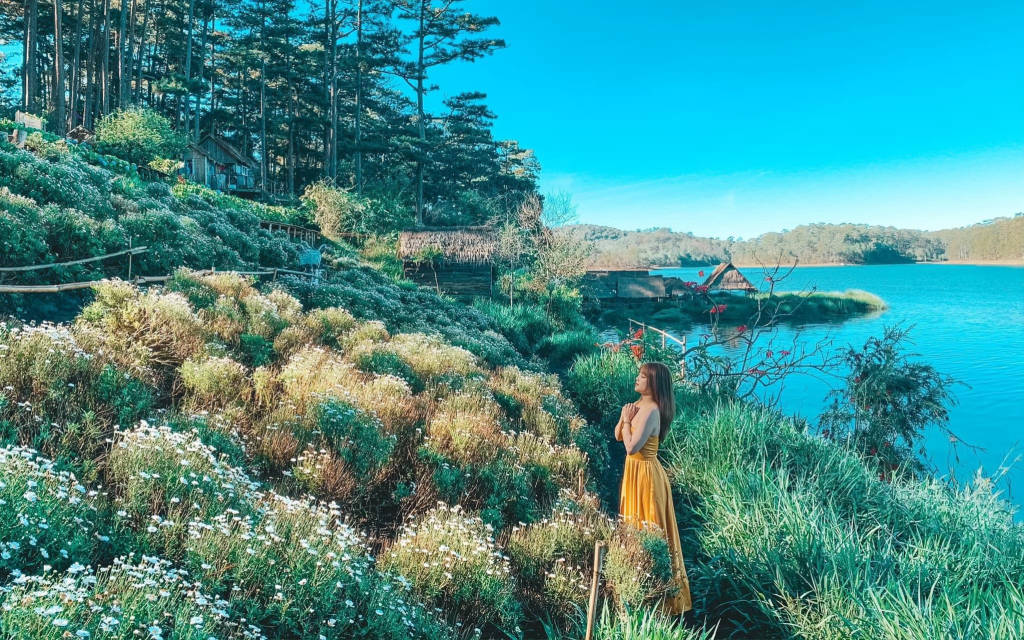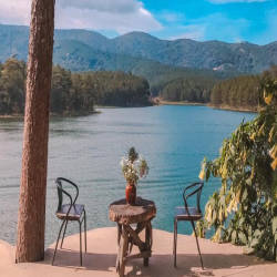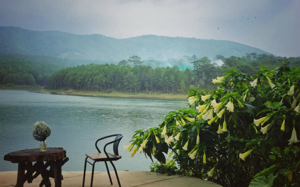 Happy Hill Coffee owns a poetic setting with a green pine hill on one side and a calm lake on the other. This place has many beautiful scenes and angles that attract tourists.