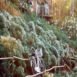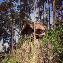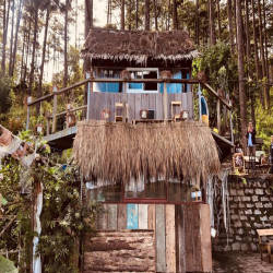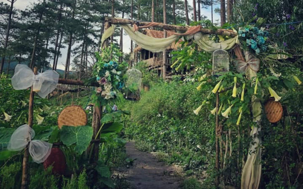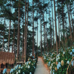 When you arrive, you will buy a ticket to visit, but that includes drinks, the drinks here are quite diverse and delicious to suit the needs of many young people, but the best dish is mulberry juice. After buying a ticket, you will go down a slope with blooming hydrangeas on both sides of the road. The scenery around the shop has many angles for you to take beautiful pictures, some of the most favorite places of young believers on the campus such as the tree house, the bird's nest area made of climbing trees, the net area. The giant spider, the stone lotus area, or the chrysanthemum flower garden in full bloom in the corner of the sky makes anyone who sees it is also easily captivated by its pristine beauty…. In addition, there is also a rental service for antique clothes to take pictures, at a very reasonable price, you will have very unique photos in the romantic scene here. If you are a person who likes peace, you can sit in a wooden house next to the lake, watch the scenery of Tuyen Lam lake, listen to the birds singing in the forest. Surely this will be this peaceful and poetic sky that will hold any visitor here.