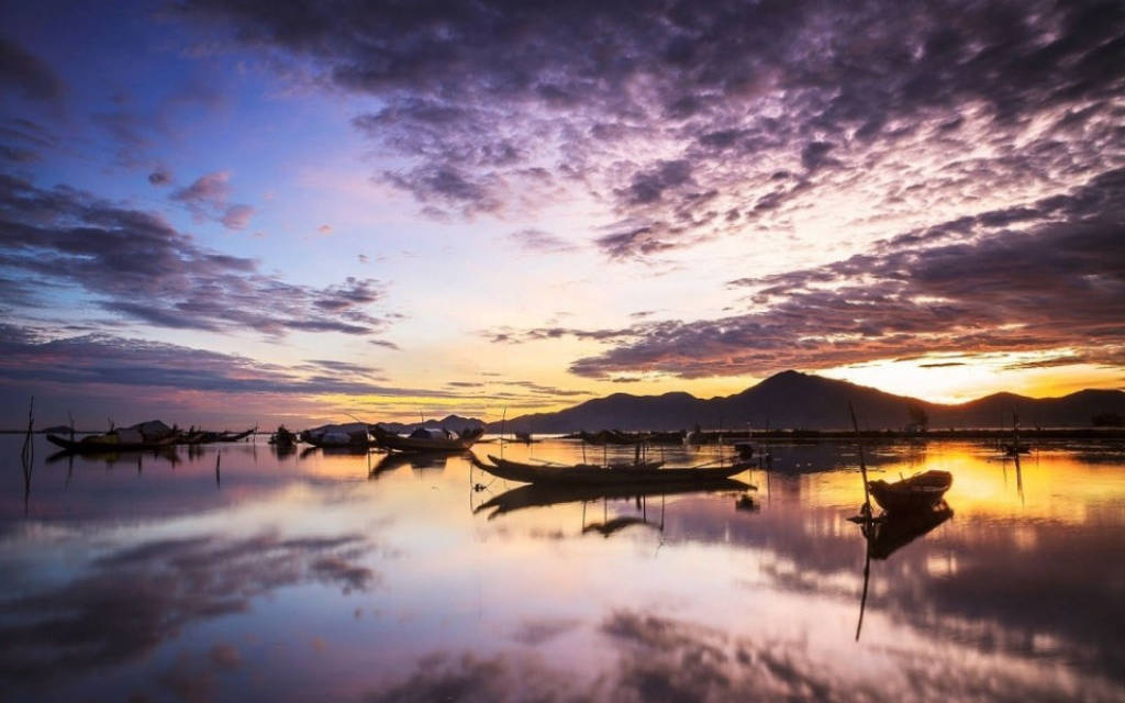 Phá Tam Giang đẹp mê hồn với mặt nước tĩnh lặng, với núi lam xanh quanh co ôm trọn, và làng chài với những chiếc thuyền con lặng lẽ giữa biển mênh mang