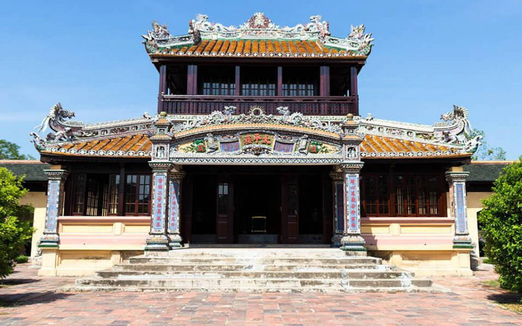 The Imperial Citadel of Hue, also known as the Imperial Citadel of Hue, has more than 100 prominent architectural works such as: Ngo Mon Gate, Thai Hoa Palace, Dien Tho Palace, Truong Sanh Palace, Hung Mieu, and The Mieu. In 1802, after ascending the throne, King Gia Long chose Hue as the capital. King Gia Long personally conducted a survey to select the location to build the citadel complex in 1803. With the purpose of serving as a place for court meetings and royal activities, King Gia Long was very deliberate in choosing the location. In 1804, the citadel began to be built with the main face facing Ngu Binh mountain. It was not until 1833, during the reign of King Minh Mang, that this work was completed.