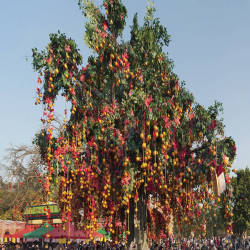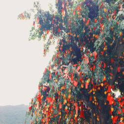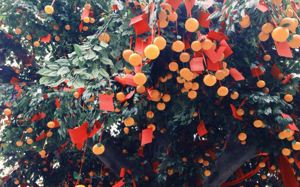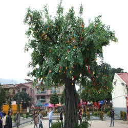 Có 4 cây nguyện ước ơ khu vực Lâm Thôn, mỗi cây tượng trưng cho những mong muốn, nhu cầu khác nhau: cây đầu tiên tượng trưng cho việc học hành, sự nghiệp, tương lai, sự sung túc; cây thứ hai dành cho hôn nhân và đường con cái; cây thứ ba là nơi bạn có thể xin bất cứ điều gì; cây thư tư được làm bằng nhựa nơi bạn có thể viết những lời cầu nguyện và ném cùng với một trái cam lên cành cây với hy vọng điều ước nguyện sẽ thành hiện thực. Người ta tin rằng nếu như quả cam và điều ước rơi treo vào vị trí càng cao thì điều ước của bạn có nhiều khả năng sẽ thành hiện thực. Nếu như chẳng may quả cam rơi xuống đất thì có thể là do bạn đã hơi tham lam trong khi đưa ra lời nguyện ước; bạn đừng từ bỏ nhé, hãy “giảm nhẹ” điều ước của mình xuống và cố gắng ném lại; đáng bề trên sẽ nhìn thấy được lòng thành và chắc chắn bạn sẽ ném thành công.