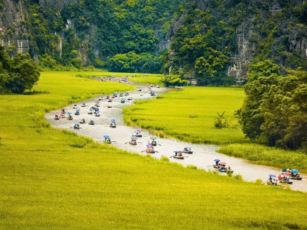 • Đi thuyền Tam Cốc hoặc hang động Tràng An (di sản UNESCO) – Ngắm cảnh quan karst và hệ sinh thái sông ngòi