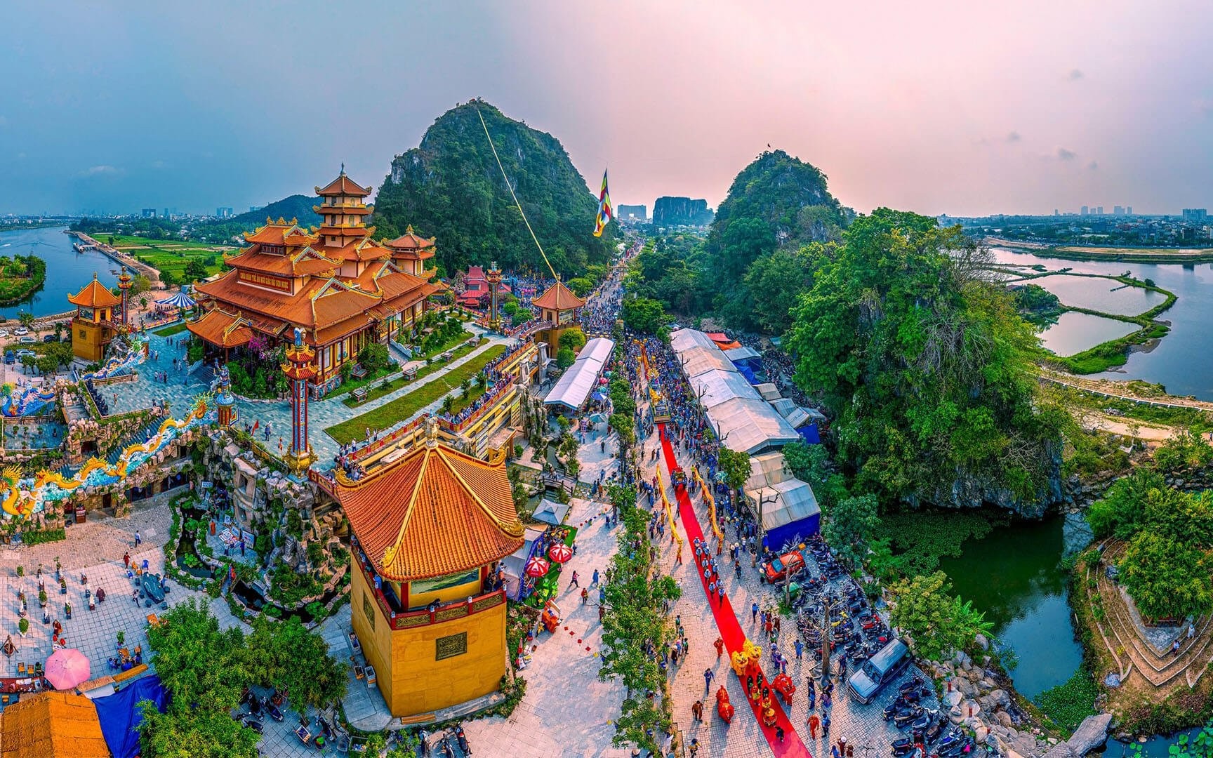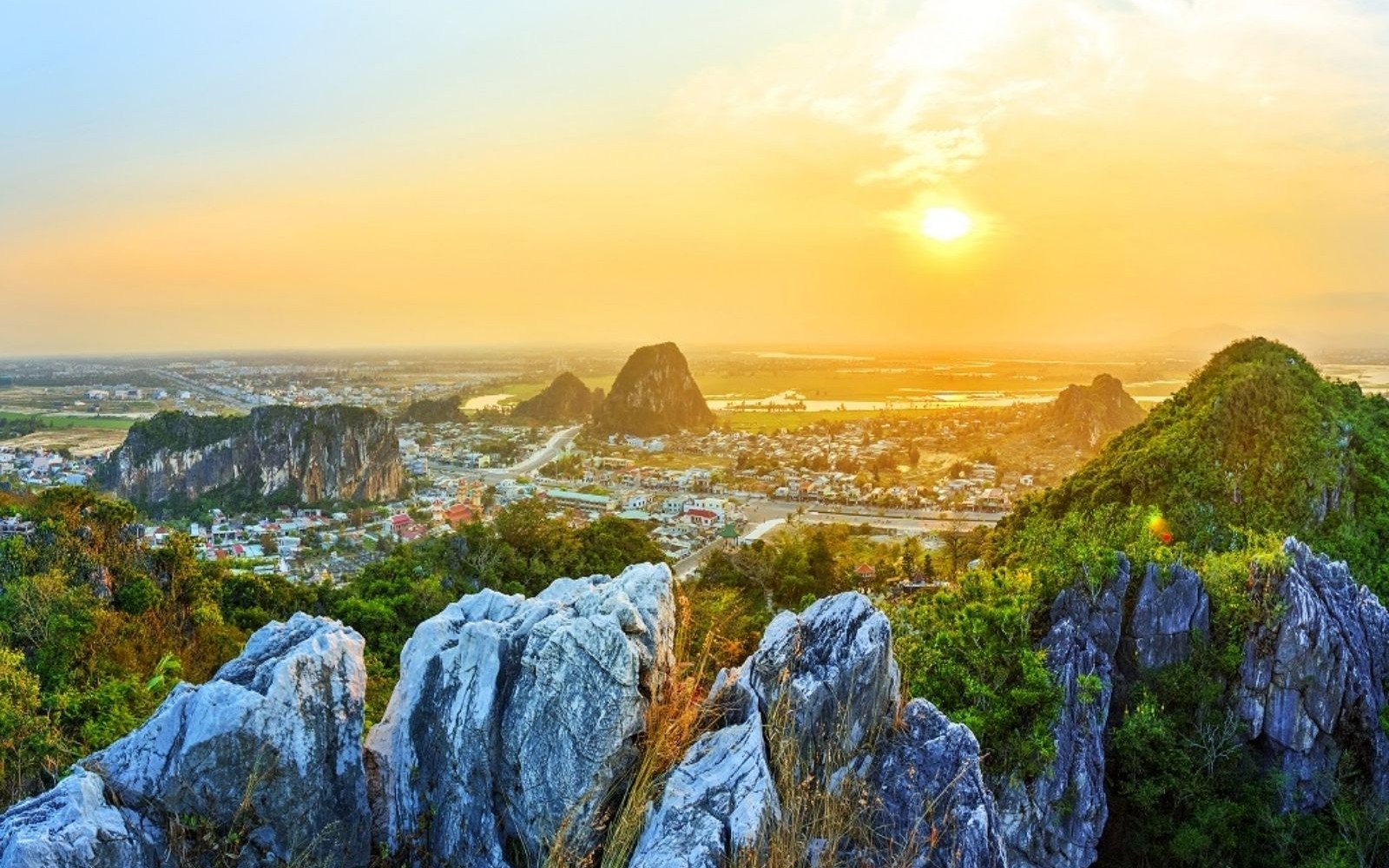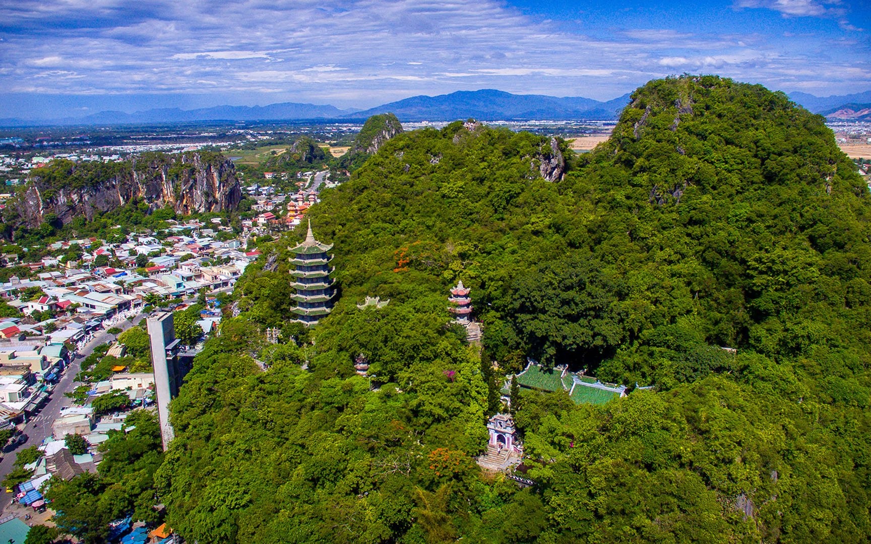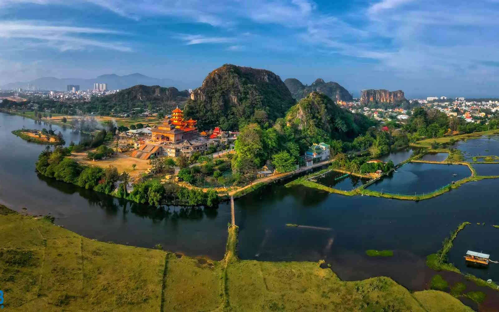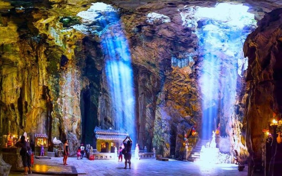 Điểm dừng chân đầu tiên là Ngũ Hành Sơn – cụm năm ngọn núi đá vôi và đá cẩm thạch, trông như năm ngón tay vươn ra sát bờ biển. Nơi đây có nhiều hang động, chùa chiền, bậc thang và các điểm ngắm cảnh ấn tượng. Đồng thời, đây cũng là nơi có các thánh địa Phật giáo và hang động Hindu, thu hút người dân địa phương đến hành hương.