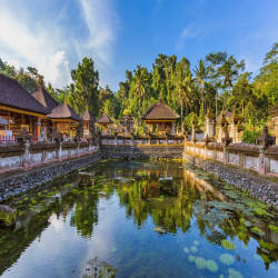 Tirta Empul Holy Water Temple is located in Manukaya village, near Tampaksiring town, about 30 minutes by car from Ubud. The temple is located just below the Tampaksiring Presidential Palace. Built in 1957 by Indonesia's first president, Soekarno, the beautifully constructed palace is also an important landmark of the island and the country.