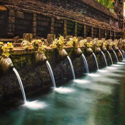Tirta Empul, which means "holy spring", is actually the name of a water source located in the temple. The stream offers numerous purification baths, pools and fish ponds around the outer perimeter, all of which flow into the Tukad Pakerisan River. Various sites throughout the region and many other archaeological sites relate to local myths and legends.