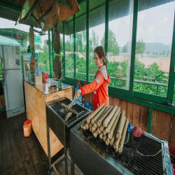 Trước đây quán được là một quán khá nhỏ, nhưng về sau quán quán đã mở rộng nhằm phục vụ du khách đến đây thưởng thức cafe ngắm cảnh. Quán được thiết kế với quy mô lớn hơn nhưng vẫn mang sự mộc mạc giản dị gần với thiên nhiên. Có rất nhiều dãy ghế đặt phía ban công, du khách có thể vừa nhâm nhi ly cafe vừa thưởng thức khung cảnh thơ mộng của khu vườn cafe. Quán cũng chia làm nhiều khu vực như khu vực uống cafe, khu vực trưng bày hàng lưu niệm, khu sản xuất chế biến cafe chồn, khu cơm lam thịt núi rừng để đáp ứng nhu cầu du khách từ xa đến. Bên cạnh đó, nơi đây có nhiều vườn hoa đẹp như hoa hướng dương, hoa tam giác mạch và còn hoa cải vàng với giá vé chỉ mất 10.000đ/người.