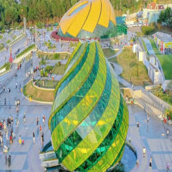 The giant wild sunflower structure, inspired by Da Lat’s signature flower, stands nearly 15m tall and spans up to 1,200m². It is designed with shimmering yellow glass panels. During the day, sunlight passing through the glass creates a sparkling effect, making the enormous blossom appear radiant in the heart of the city. Beyond its symbolic value, the interior of the sunflower serves as a large stage, regularly hosting artistic performances, music shows, and cultural programs for both visitors and the local community.