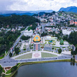 Located right in the city center along the shore of Xuan Huong Lake, Lam Vien Square boasts an exceptionally convenient position. From Da Lat Market, visitors only need a few minutes on foot to reach this destination. Covering an area of over 72,000m², it is considered one of the largest public spaces in the city. More than just a leisure spot, the square also hosts major cultural events such as the Da Lat Flower Festival, trade fairs, art exhibitions, and street music performances. From here, visitors can easily take in panoramic views of the tranquil Xuan Huong Lake, the endless green pine forests, and experience the harmonious blend between poetic nature and the modern vibrancy of this youthful city.