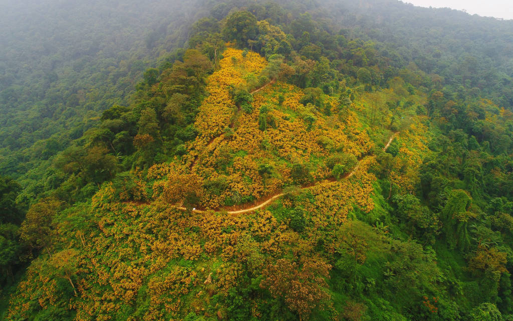In the middle of the semi-mountainous mountainous region of Doai, a towering mass of mountains with 3 peaks makes the name Ba Vi, which is King Peak 1,296m high, Tan Vien peak 1,227m high, Ngoc Hoa peak 1,131m high . In the middle of the mountain, there are many waterfalls pouring down day and night, forming attractive tourist destinations such as Khoang Xanh, Ao King, Thac Nga, Suoi Ngoc..., all forming a charming young population. Ba Vi National Park is located in that massive mountain mass, extending to the top of Vien Nam in Hoa Binh land.
