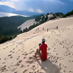 Để tận hưởng vẻ đẹp bất tận của đồi cát Từ Nham, bạn nên có mặt ở đồi cát vào sau 15 giờ chiều vì lúc đó nắng đã dịu đi bớt, cát không còn nóng, gió biển sẽ mát hơn. Ngoài ra, bạn còn có thể chiêm ngưỡng được khung cảnh hôn bắt đầu buông dần trên Vịnh Xuân Đài.