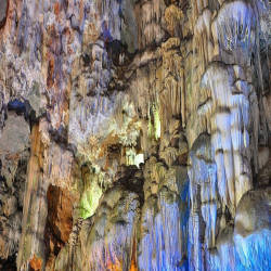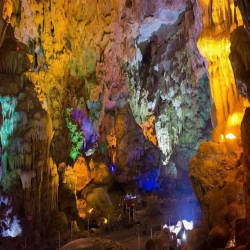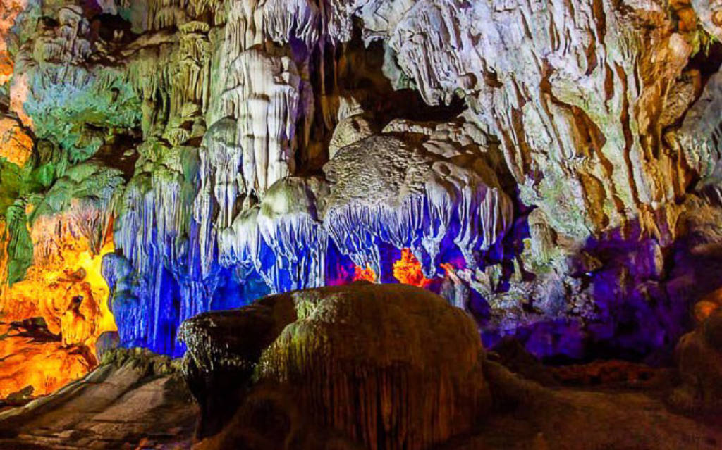 Từ cảng tàu đến động Thiên Cung, bạn sẽ được đắm chìm trong cảnh đẹp cũng của những ngọn núi hòa quyện cùng màu xanh ngọc bích của nước biển sẽ tạo cho bạn những bức ảnh rất đẹp. Đường lên tới Động Thiên Cung, bạn sẽ men theo đường bậc thang bê tông, hai bên cây che phủ cho tới khi bắt gặp một khe cửa hang hẹp, đó chính là cửa vào động. Bước vào hang bạn sẽ cảm nhận sự mát mẻ từ những cơn gió bên trong lòng hang thổi ra. Càng vào sâu, bạn sẽ càng ngỡ ngàng trước vẻ đẹp hết sức lộng lẫy của muôn vàn thạch nhũ, những thạch nhũ được hình thành cách đây hàng triệu năm, dưới ánh đèn càng làm chúng trở nên độc đáo. Động rộng gồm nhiều cấp, nhiều ngăn với các trần và bờ vách cao. Trong động, có vô số các khối nhũ đá, măng đá với đủ hình dạng hình thù, dưới trí tưởng phong phú của con người khiến chúng trở thành những bức tượng vô cùng sống động như hình ảnh những nàng tiên, xa xa là hình ảnh thầy trò đường tăng đi lấy kinh, những chú rồng đá... Động Thiên Cung được đánh giá là đẹp trong Vịnh Hạ Long mà không thể tìm thấy ở bất cứ hang động ở nơi nào khác. Nếu có dịp đến Hạ Long bạn hãy tham quan động Thiên Cung, một hang động đẹp trong lòng di sản thiên nhiên thế giới.
