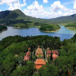 2. Ngắm hồ Tuyền Lâm từ trên cao: Với góc nhìn từ Thiền viện, hồ Tuyền Lâm như một bức tranh sơn thủy hữu tình.