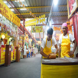 Một trong những nơi tốt nhất để trải nghiệm Lễ hội ăn chay (Tesagan Gin Je) tại Bangkok là Soi 20 của đường Charoen Krung. Trong lễ hội, bạn có thể ghé các ngôi chùa tại đây và lặng lẽ quan sát mọi người làm công đức. Tại các ngôi chùa còn có biểu diễn kinh kịch Trung Quốc diễn ra hàng ngày, từ 6 giờ tối đến 7 giờ tối.