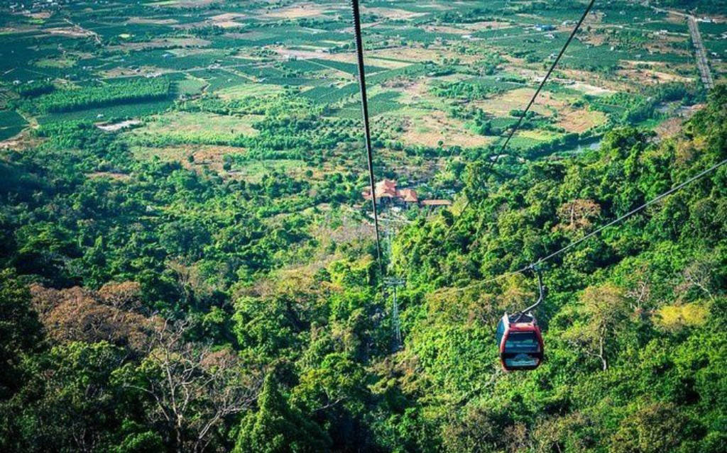 Đi cáp treo chỉ với 15 phút, hệ thống cáp treo của núi Tà Cú dài 1.600m, cao 505m, có 35 khoang đóng mở tự động. Nếu chọn cách này, du khách sẽ được thưởng ngoạn cảnh quan từ chân núi đến đỉnh núi với những cánh rừng xanh rì.